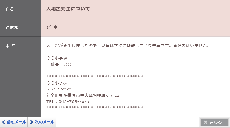 | 5 | 「閉じる」を押すと、メール配信履歴の一覧画面に移動します。 |